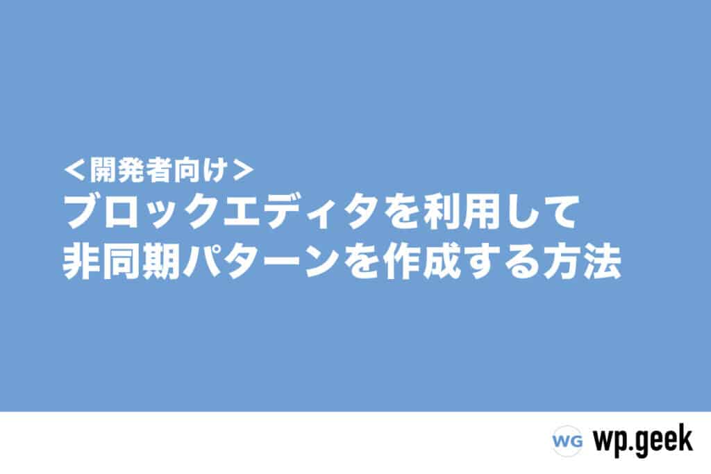 本記事ではブロックエディタを利用した非同期パターンの作成方法を紹介しました。