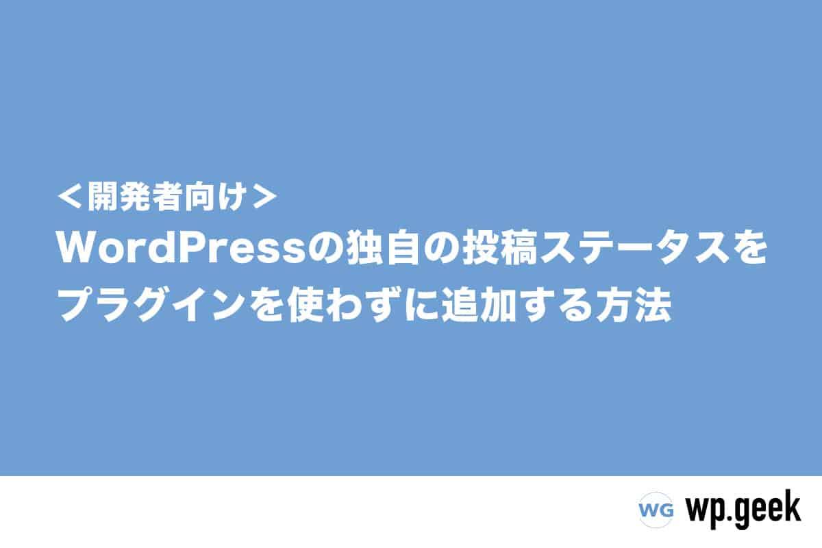 「公開」や「非公開」といった投稿ステータスに独自にカスタマイズした投稿ステータスを編集する方法を紹介します。開発の参考にしてください。 <続きを読む>