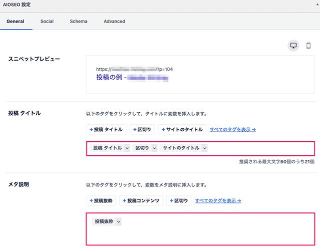 ※All in One SEOの投稿ページ以外の設定方法については、別記事で解説します。