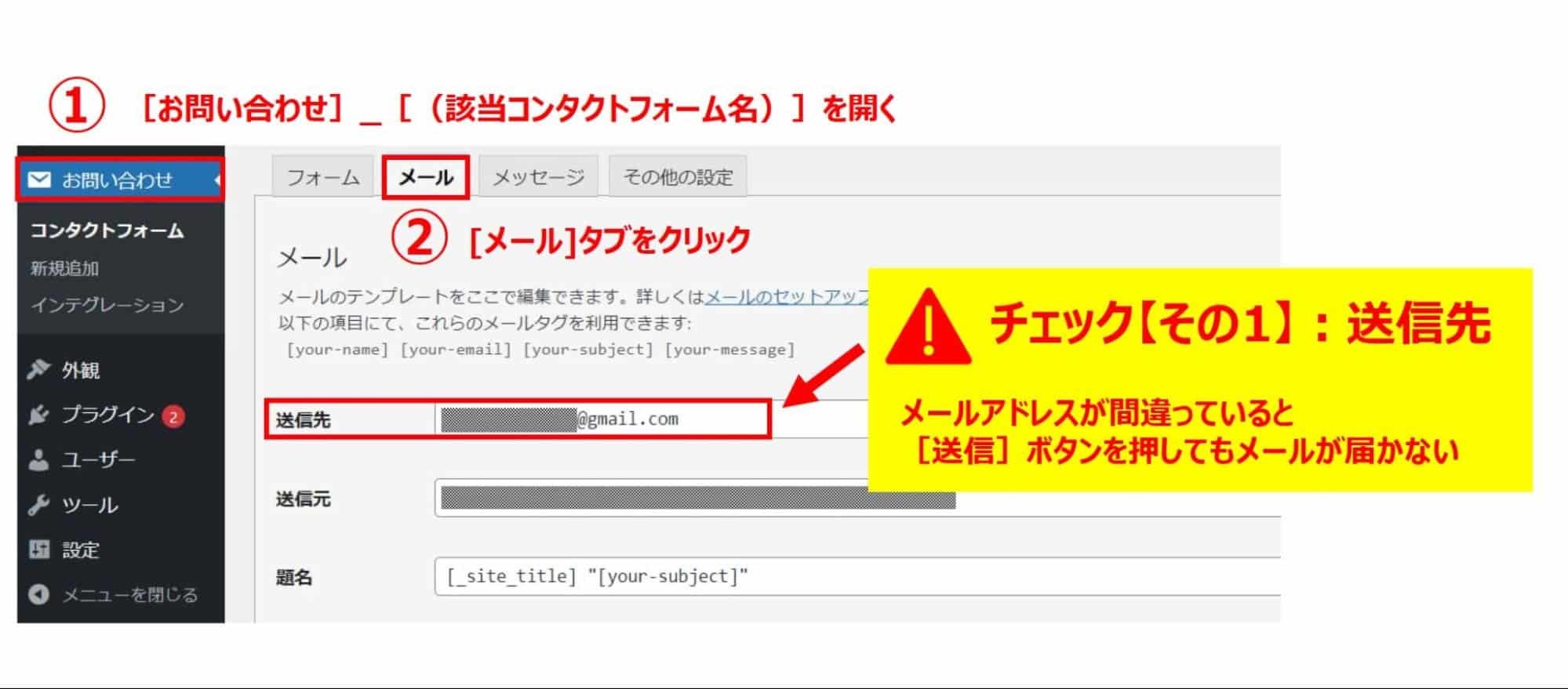 - ① Contact Form 7から届くメールが迷惑メールフォルダに入ってしまう、またはエラーメッセージが届く